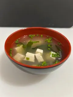 un bouillon de dashi (épice poisson) pâte de Miso, Ciboulette, Tofu et algues