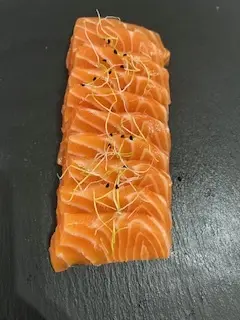 Le SASHIMI c'est un mets JAPONAIS d'exception , constitué de très fines tranches de Saumon cru, découpé avec une grande précision . il est apprécié pour sa saveur pure. il se déguste avec la sauce soja, le wasabi et sans riz. Pour les puristes !